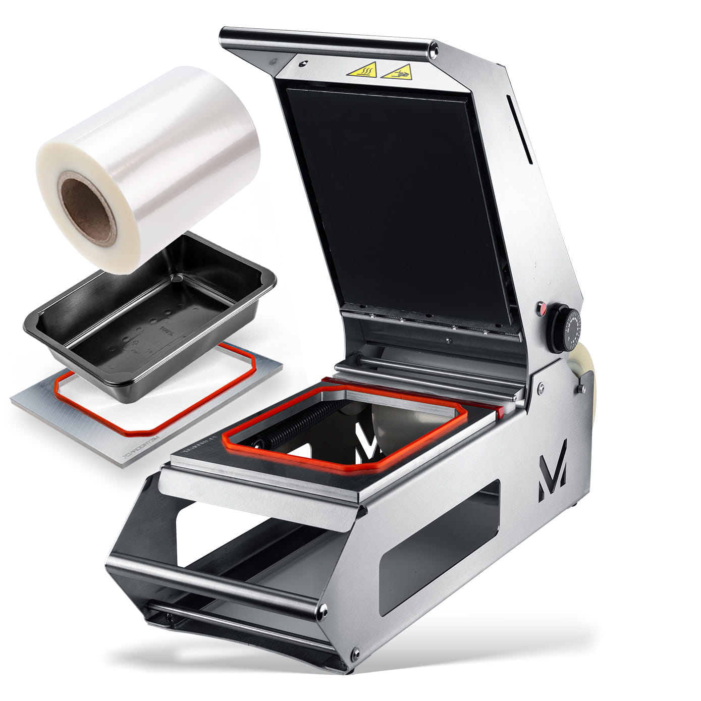 Zgrzewarka METROOPACK M10 jest odpowiednich rozmiarów, aby pomieścić matryce do największych opakowań gastronomicznych, stosowanych do pakowania dań na wynos. Ponadto, z łatwością zgrzewasz kilka mniejszych pojemników do zgrzewy podczas jednego procesu. Dzięki swoim kompaktowym wymiarom, bez trudu umieścisz ją na dowolnym blacie kuchennym.